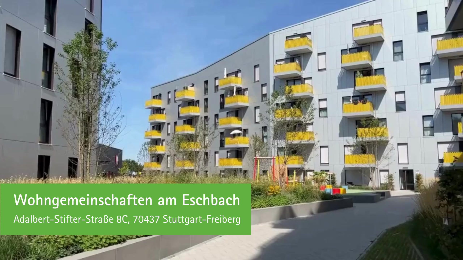 Die beiden ambulant betreuten Wohngemeinschaften am Eschbach in Stuttgart-Freiberg bieten jeweils Raum für acht ältere Menschen mit Hilfe- und Unterstützungsbedarf aufgrund körperlicher oder geistiger Einschränkungen. Im barrierefreien Wohnraum ist rund um die Uhr eine Alltagsbegleitung für Sie da. In familiärer Atmosphäre erhalten Sie die Unterstützung, die Sie benötigen. Ihre Ideen zur Gestaltung des Tages und des Zusammenlebens in der Wohngemeinschaft sind dabei willkommen.